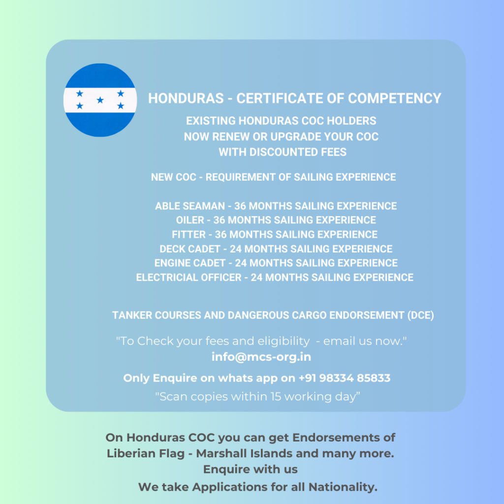Special Discount : Upgradation from Honduras Third Officer to Second Officer COC or renewal of Second Officer COC = 9 months before expiry of COC =  Inr 5000 discount.